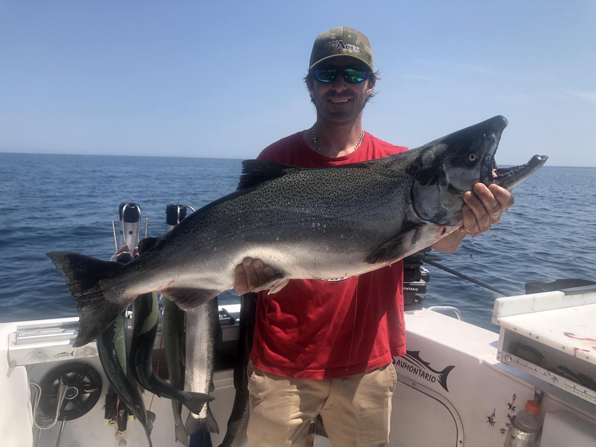 Partez pour une journée de pêche inoubliable au saumon chinook, saumon coho et truite arc-en-ciel (steelhead) avec nos guides passionnés.